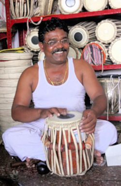 | Haridas' relentless journey in the search of knowledge and perfection still continues. It is his mission to take his art all around the world through collaborated efforts. Also, he is committed towards passing on his art to the next generation. Today, the fourth generation into the profession promises to bring even greater glory to the family. His sons Kishore and Manoj are keenly and dedicatedly mastering the art of Tabla making from Haridas, and are already receiving a lot of appreciation from many stalwarts. Haridas hopes that their talent exceeds that of him and reaches untouched heights in all aspects of the art of Tabla making. | ![]() |